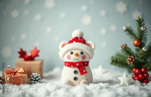 Christmas background with cuddly toys.