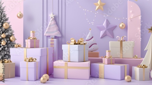 Christmas background with gifts box and decorative holiday decorations. Happy New Year and Merry Christmas