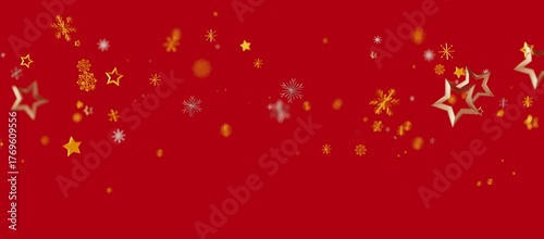 Christmas background with golden stars, snowflakes, and ornaments on a vibrant red backdrop. Perfect for holiday designs and festive celebration