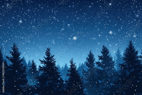 Christmas Background,Winter Night sky dark blue with starry,snowy in woodland landscape with firs,coniferous forest pine and falling snow,Vector Banner for Xmas, with generative ai