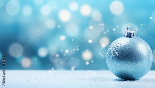 Christmas ball on a blue background in defocus. Abstract bokeh backdrop. New year and Christmas background footage.