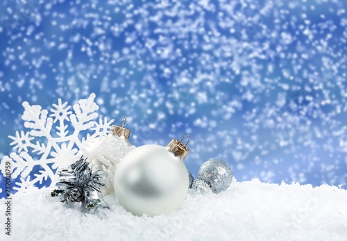 Christmas balls in snowflakes on background
