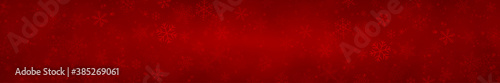 Christmas banner of snowflakes of different shapes, sizes and transparency on red background
