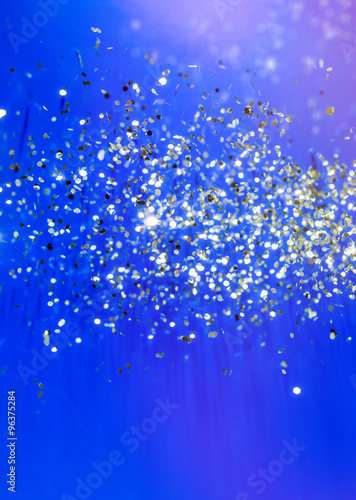 Christmas blue background. Golden holiday glowing abstract glitt