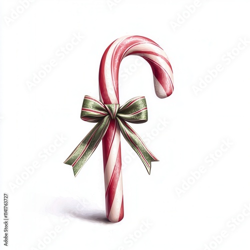 Christmas Candy Cane with Green Bow Festive Holiday Sweet Treat Winter Season Dessert