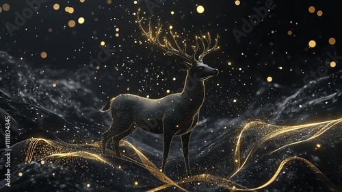 Christmas card with golden deer.