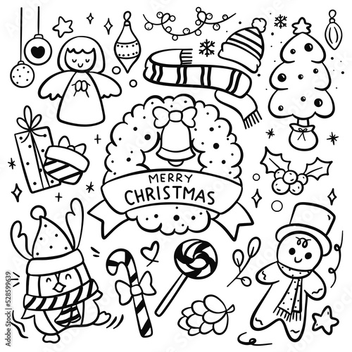 Christmas Cartoon Concept Hand Drawn Doodle Elements Vector Illustration
