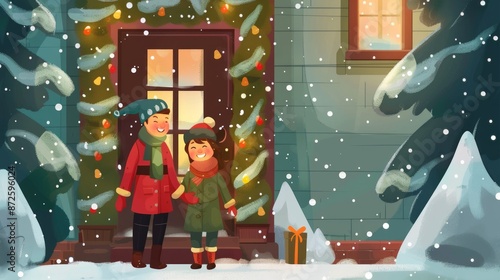 Christmas Cheer: Couple Standing by Door