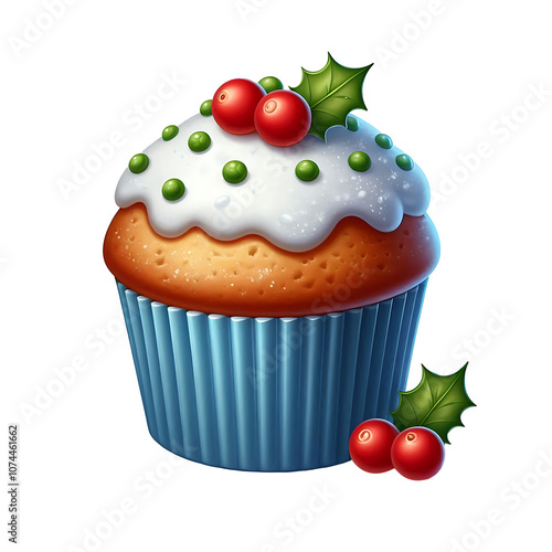 Christmas chocolate chip muffin cake with Cranberries and leaves