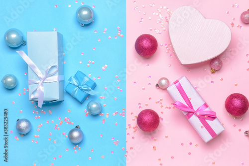 Christmas composition with gifts on color background