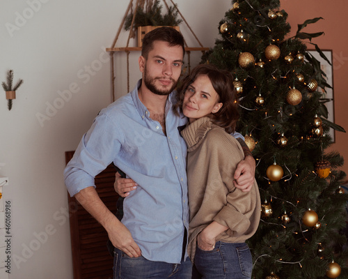 Christmas Couple.Happy Smiling Family at home celebrating.New Year People