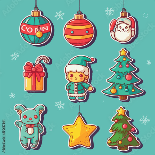 Christmas decor sticker set, xmas attribute printable sticker collection sheet. New-year collection
