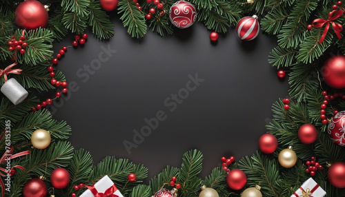 christmas decorating element object on dark shiny counter top greeting joyful season of celebrate and festive background