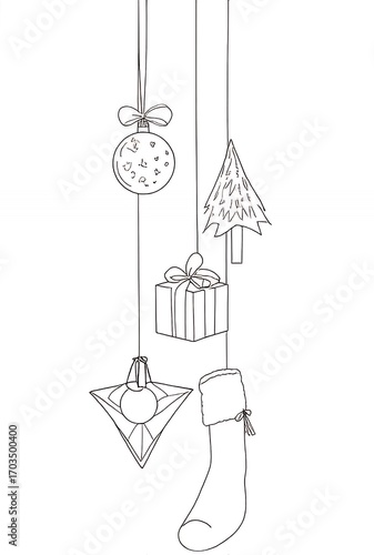 Christmas Decorations Hanging Line Art