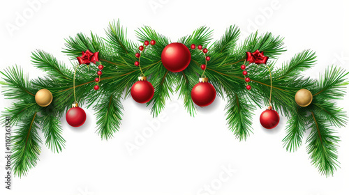 christmas decorations with tree branches on white background