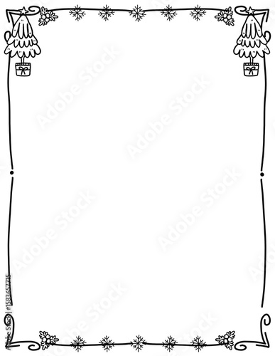 Christmas Doodle Border Frame. Hand-Drawn Black Line Borders. winter holiday Border Frame. Xmas Frames. Perfect for invitations, worksheets, weddings, and printable projects.