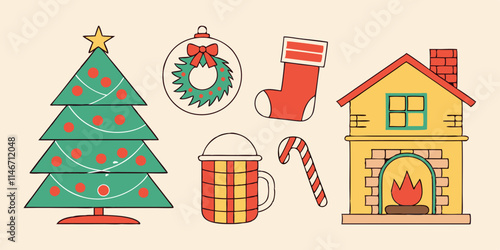 Christmas elements and icons, Christmas tree, gifts, snowflakes, fireplaces, Vectors & Illustrations