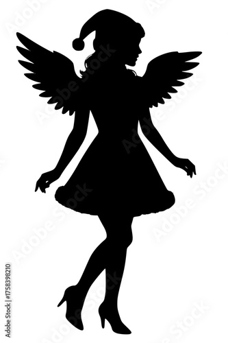 Christmas Fairy Silhouette, Festive Winged Woman Outline