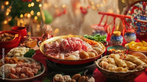 Christmas feast with festive dishes