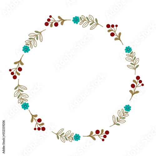 Christmas floral wreaths. Flat design for invitation, greeting card, postcard, packaging. Hand drawing illustration.