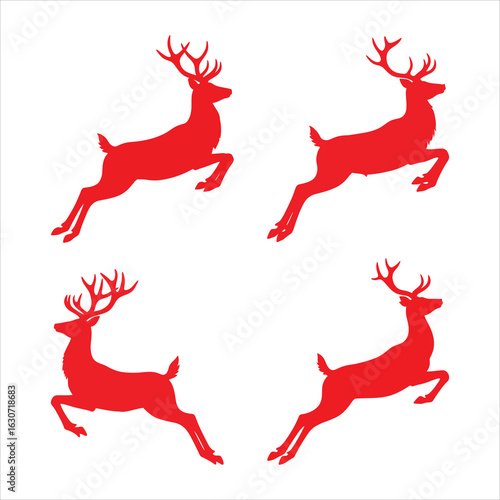 Christmas four red reindeer isolated on white background, a festive design for christmas and winter holidays design elements