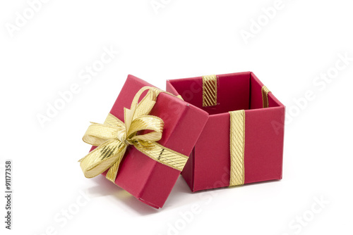 christmas gift box with a gold ribbon bow