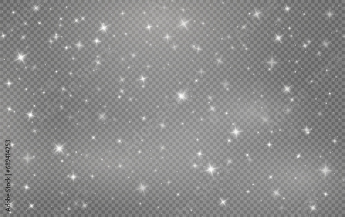 Christmas glowing bokeh confetti light and glitter texture overlay for your design. Festive sparkling white dust png. Holiday powder dust for cards, invitations, banners, advertising.