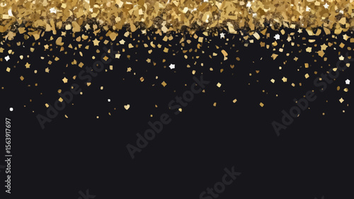 Christmas golden confetti. Abstract background with many falling gold tiny confetti pieces. vector background Falling shiny confetti glitters in gold color. New year, birthday, valentines day design e