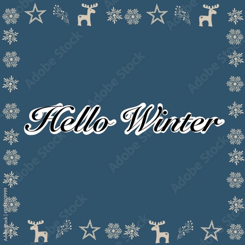christmas greeting card christmas background with snowflakes deer trees new year christmas, winter, snow, frame, snowflake, border, holiday, illustration, decoration, design, card