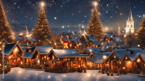 Christmas Harmony in a Magical Winter Village with Festive Wonder, Glittering Trees, and Cozy Lights, Where Unique Details Enhance the Holiday Landscape and Spark Imagination