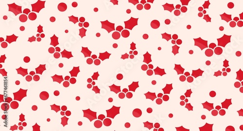 Christmas holly berries seamless pattern for gift wrapping paper, festive design, traditional background. Flat modern