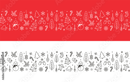Christmas horizontal seamless pattern, hand drawn, elegant and detailed, great for christmas textiles. Festive pattern for greeting cards