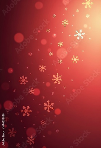 Christmas illustration with various small snowflakes on gradient background in red colors