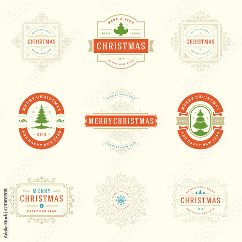 Christmas labels and badges vector design elements set.