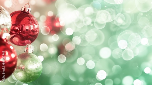 Christmas light and festive tree background with gold and red decorations, ideal for seasonal cards