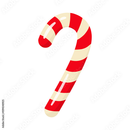 Christmas lollipop. New Year's Candy cane. Isolated flat vector illustration. Merry Christmas