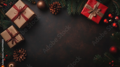 Christmas Mood Concept with Festive Attributes. AI generated illustration.