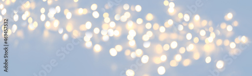 Christmas New Year blue background banner with golden bokeh lights