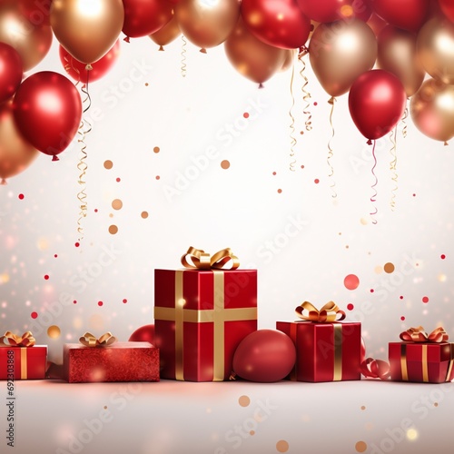 christmas /New year boxes gift celebrate card,red and gold theme ,Ai generated