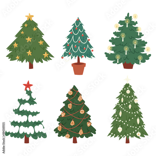 Christmas New Year tree vector icons ornament star xmas gift design holiday celebration winter season party tree plant.