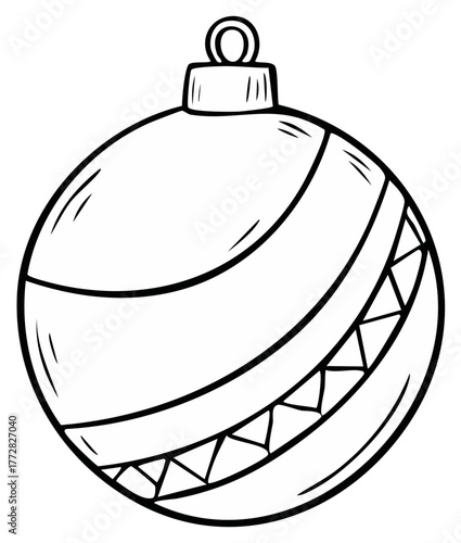 Christmas ornament, black and white line art decoration. Holiday design vector illustration.