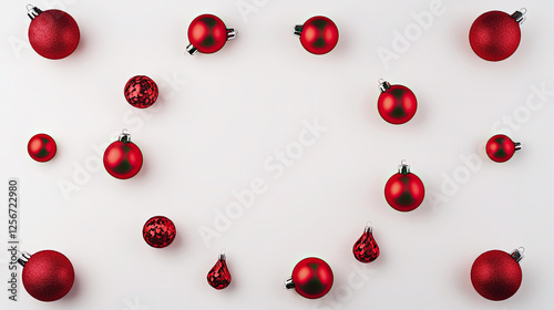 Christmas Ornament Flatlay Red Balls on White Background Festive Holiday Decoration