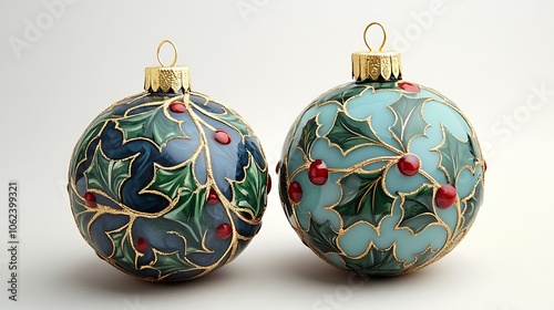 Christmas ornaments with holly and ivy