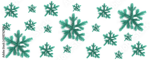 christmas panoramic banner. snowflakes made of spruce branches. new year minimal concept. flat lay, top view