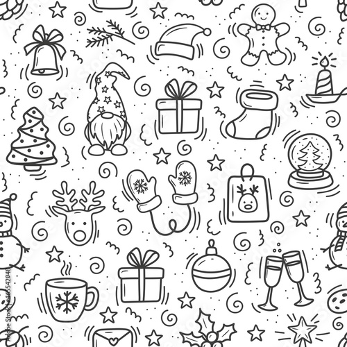 Christmas pattern in doodle style. cartoon on a white background