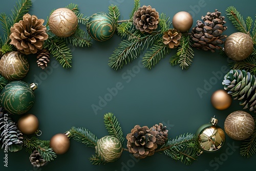 Christmas Pine Cone and Ornament Garland for Holiday Decoration, Design for Print, Card, Poster