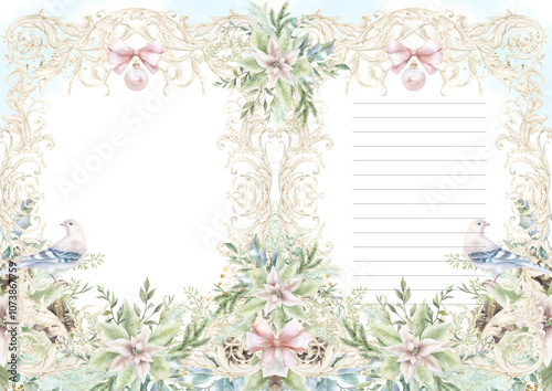 Christmas planner page, watercolor junk journal Xmas backdrop, scrapbook design, notebook page. letter template, daily planner
