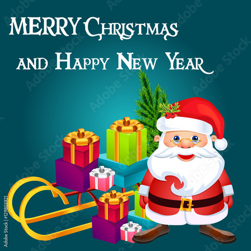 Christmas poster design with snowman characters.Santa Claus.Happy Christmas companions.Vector Christmas.Seamless holiday background .