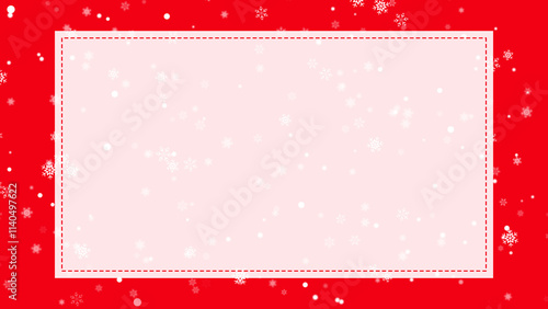 christmas red background with snowflakes falling and frame, winter holiday and new year sale copy space social media design element
