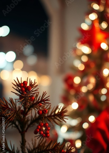 Christmas red pine tree with background bokeh light new year sign copy space bokeh red bokeh abstract background glow design light texture effect sparkle